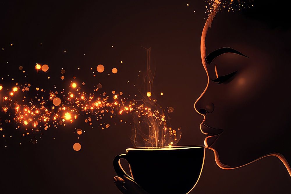 Acheter ce art numérique femme boit du café par Egon Zitter sur toile, aluminium, ArtFrame ou photographie (encadrée), impression d'art en haute définition et tout type de format.