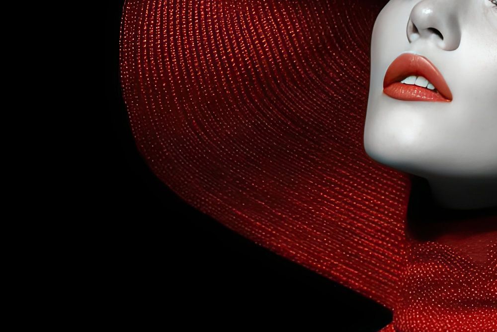 Portrait photographique d'un mannequin de mode en noir et blanc avec des accents rouges