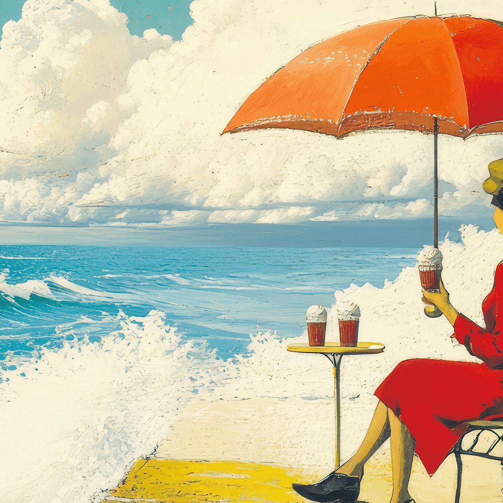 Acheter ce art numérique femme vintage à la plage par LidyStuit sur toile, aluminium, ArtFrame ou photographie (encadrée), impression d'art en haute définition et tout type de format.