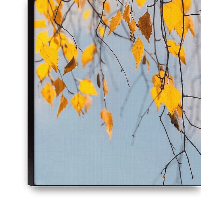 Achetez cette photo feuilles de bouleau dorées dans le gris du brouillard par Daniela Beyer sur toile, aluminium, ArtFrame ou photographie (encadrée), impression d'art en haute qualité et tout format.