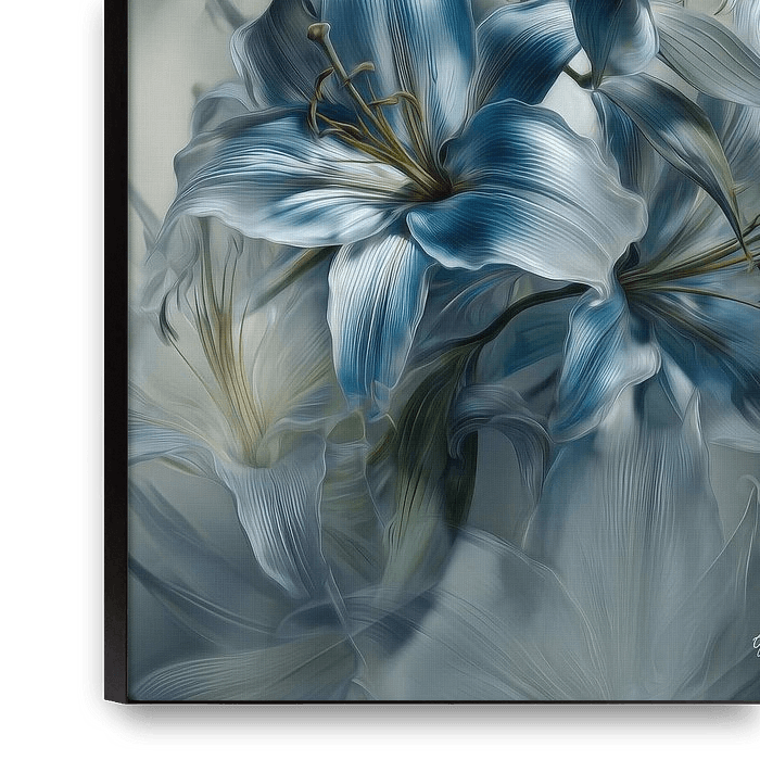 Apportez calme, profondeur et raffinement à votre intérieur avec cette peinture florale envoûtante où le bleu joue le rôle principal. Les transitions douces entre le bleu glacier, le turquoise et le bleu nuit profond s'harmonisent dans une composition presque…