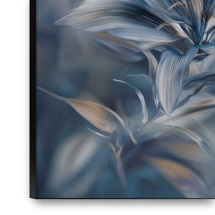 Apportez calme, profondeur et raffinement à votre intérieur avec cette peinture florale envoûtante où le bleu joue le rôle principal. Les transitions douces entre le bleu glacier, le turquoise et le bleu nuit profond s'harmonisent dans une composition presque…
