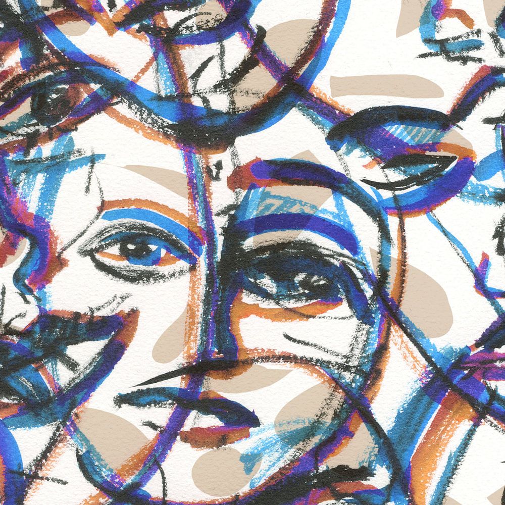 Une collection de visages humains établis de manière transparente au-dessus de l'autre. Motif graphique.