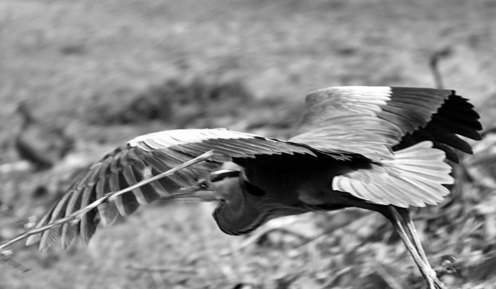 Tout juste sorti de sa position de départ, ce héron s'envole de l'herbe. Avec la grande aile, il gagne rapidement en hauteur et a disparu dans les nuages.