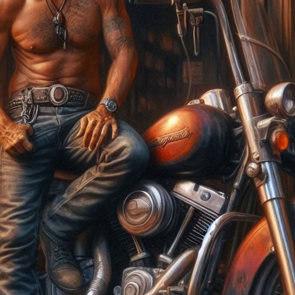 Quelles images dures de ces hommes d'âge mûr avec leurs motos dans leur bar, à leur manière sexy et confiante. Ces images donneront une touche d'authenticité à votre intérieur.
