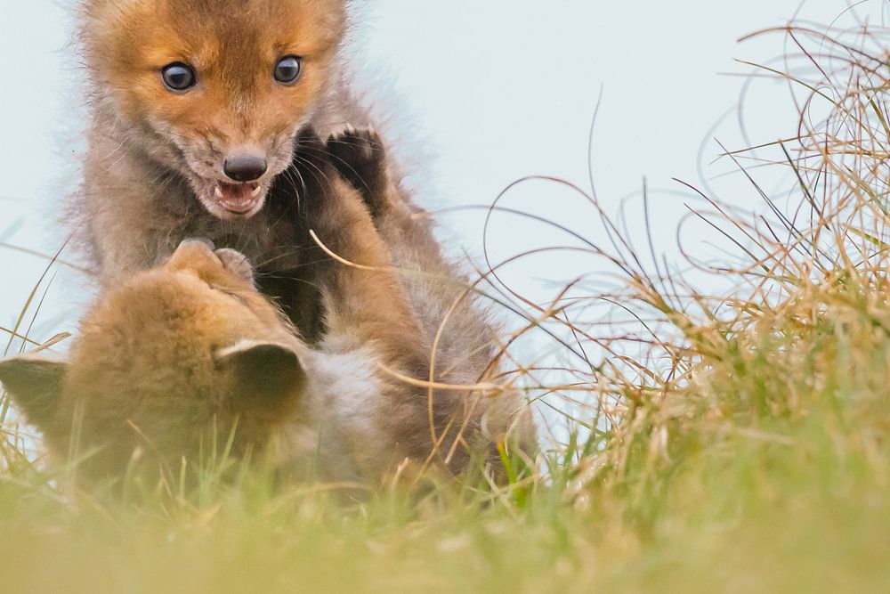 Achetez cette photo jeunes renards par Pim Leijen sur toile, aluminium, ArtFrame ou photographie (encadrée), impression d'art en haute qualité et tout format.