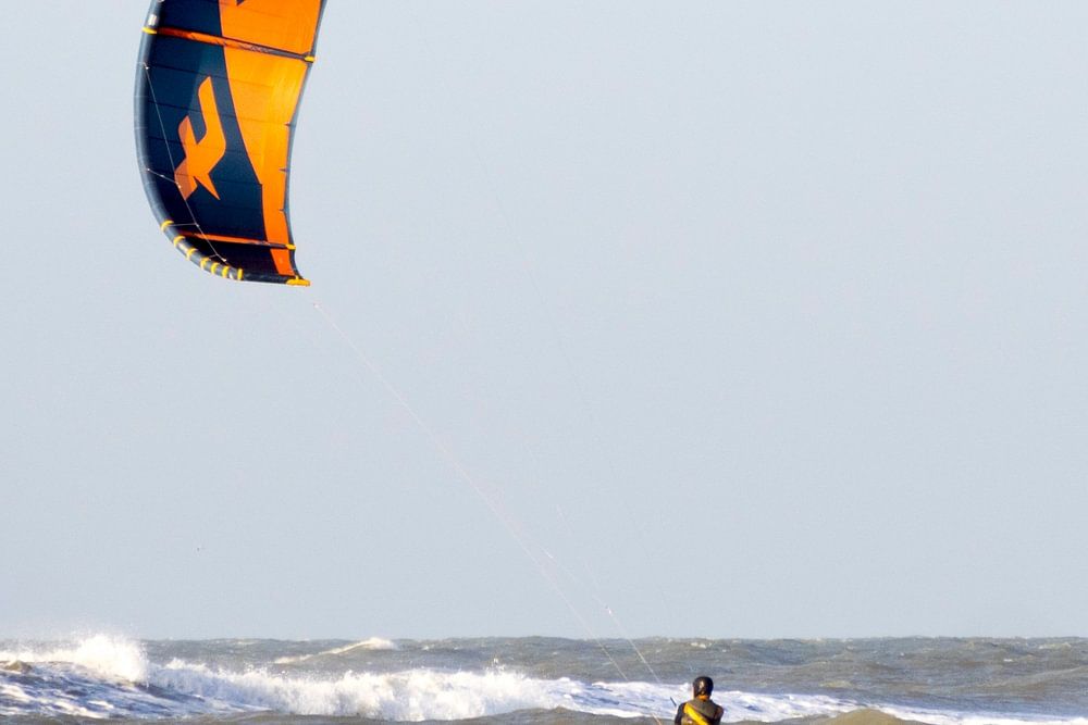 Kite surfers dans la mer au Noordpier à Velsen et Wijk aan Zee