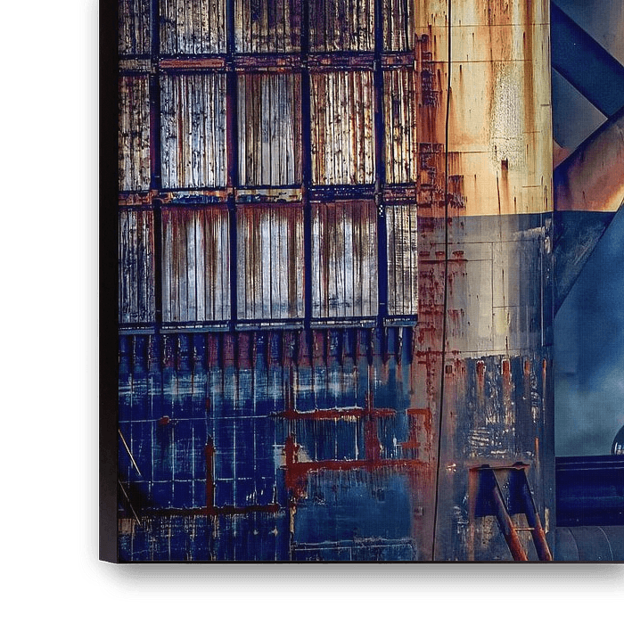 À tous ceux qui sont séduits par la beauté de l'industriel. Pour les amoureux des grandes structures, des matériaux bruts et de l'aspect robuste et puissant. Cette image s'intègre parfaitement dans un atelier ou un bureau, mais elle est tout aussi à l'aise dans un salon moderne, industriel ou minimaliste. Une image qui s'impose : calme, monumentale et pleine de caractère.