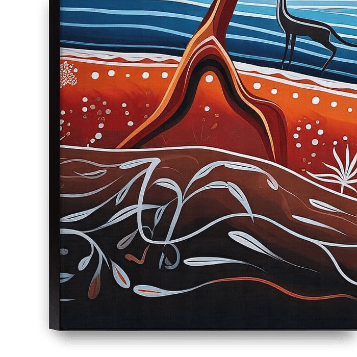 Les artistes, qui utilisent une palette issue de l'essence même de la terre ferme - des ocres, des fusains et des pigments minéraux qui font écho à la beauté sauvage de l'Outback - rendent hommage aux premiers gardiens de cette étendue sacrée. Les tons terreux ne sont pas de simples teintes ; ils sont l'âme du terrain lui-même - terre de sienne brûlée pour les déserts étendus, terre d'ombre pour la terre généreuse, et un spectre d'or pour les côtes baignées de soleil.