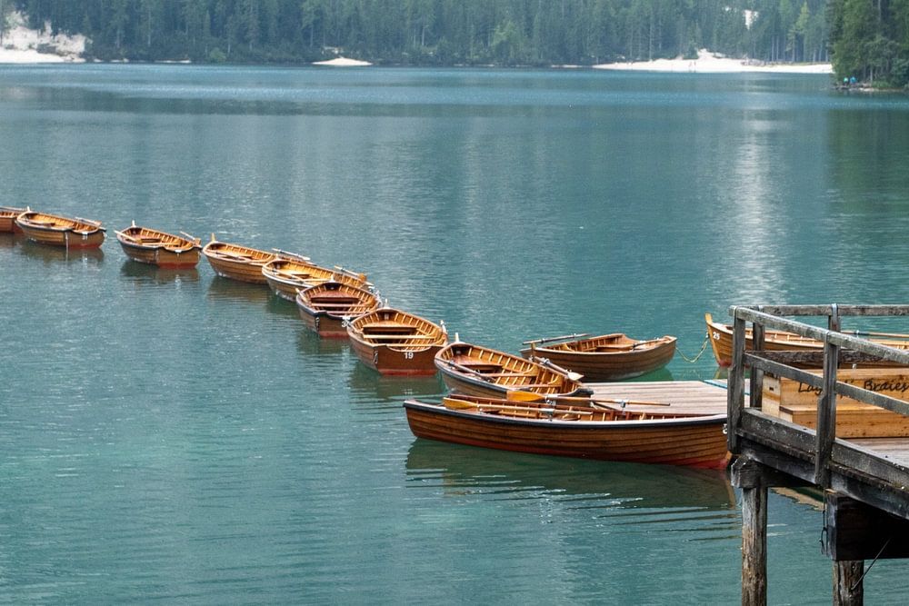 lago di braies et les célèbres bateaux en bois brun