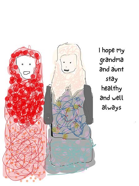 Je suis sorti avec ma grand-mère et ma tante aujourd'hui. Elles sont aussi mes voisines. Je leur souhaite santé et bonheur pour toujours.