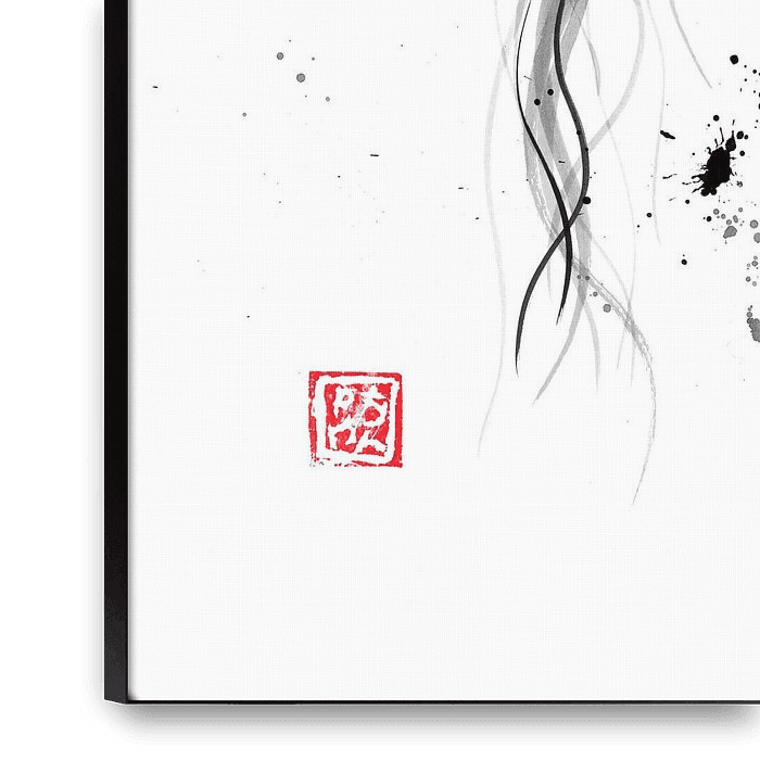 Le SUMI-E est une technique japonaise empruntée au chinois au VIème siècle. Il s’agit d’un lavis obtenu grâce à de l’encre de chine diluée et appliquée sur du papier.