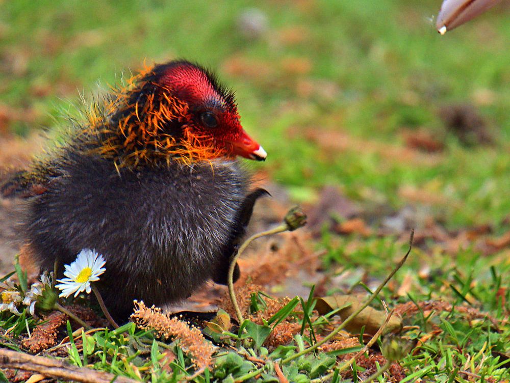 La progéniture de la foulque dans le parc du château de Berge à Gelsenkirchen