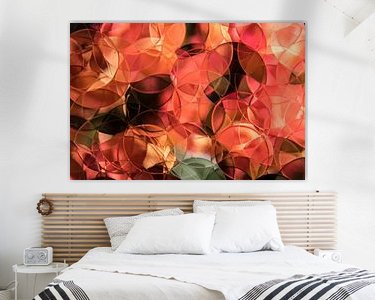 "Nature morte de roses de couleur corail, abstrait" est une macro photographie dans laquelle, en utilisant la réfraction de la lumière, ces roses de couleur corail de forêt sont transformées en une oeuvre abstraite.