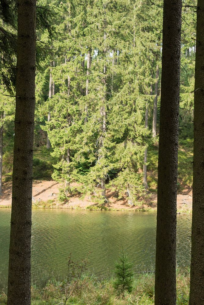 verticale opname natuur in de bossen van harz gebergte duitsland