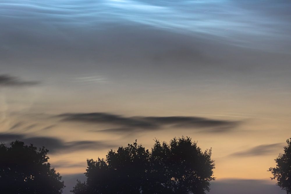 Le dernier vestige des nuages nocturnes lumineux de la nuit où la photo a été prise, les nuages bleus se détachent pendant la nuit.