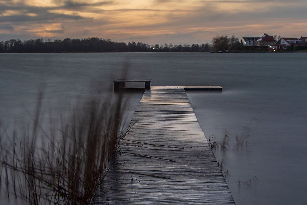 cette photo a été prise lors d'un coucher de soleil venteux. la jetée se trouve près de Groningen dans une belle réserve naturelle.
