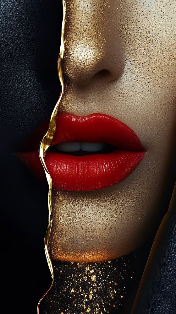 Découvrez notre collection exclusive de peintures de femmes en or, noir et rouge, créées grâce à l'intelligence artificielle.
