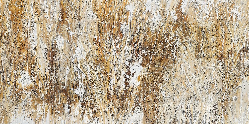 Une abstraction blanche et dorée en format panoramique, noble et sobre. J'ai peint ce tableau sur toile en utilisant la technique de la structure.