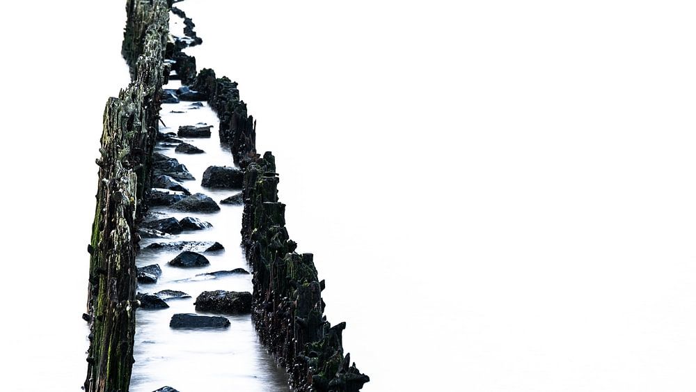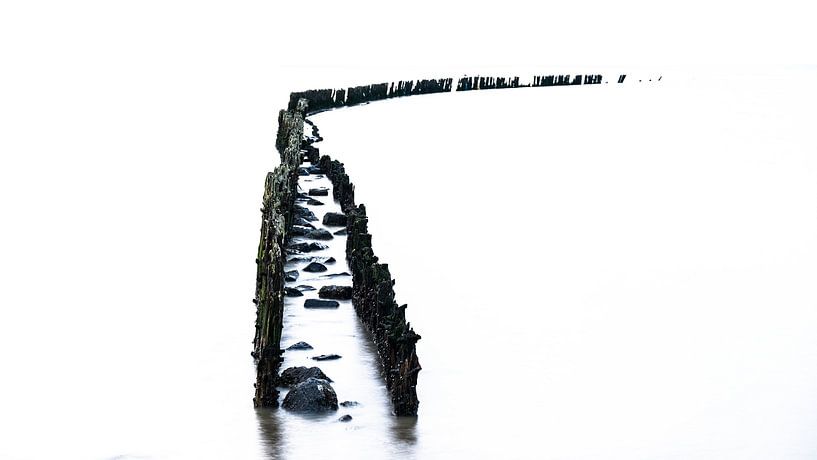 Deux rangées de poteaux en bois patinés forment un étroit passage à travers les eaux calmes et guident lentement le regard vers un horizon qui se fond presque entièrement dans le blanc. Grâce à l'utilisation d'une longue vitesse d'obturation, l'eau se transforme en une surface douce et uniforme où le…