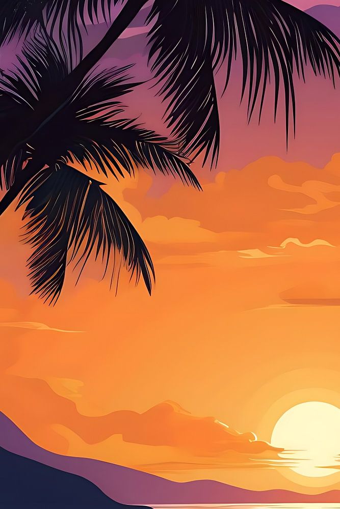 Een eigentijds kunstwerk toont een paradijselijk eiland met prachtige witte zandstranden en een turquoise oceaan. Palmbomen wiegen in de zachte bries en kleurrijke bloemen fleuren het landschap op. De gedurfde kleuren en abstracte vormen vangen de exotische en betoverende sfeer van dit tropische paradijs, waardoor de kijker wordt meegevoerd naar een plek van rust en sereniteit.