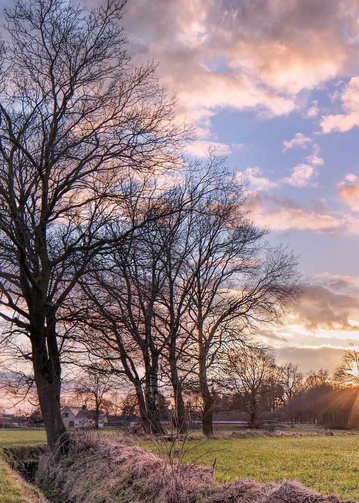 paysage agraire avec un fossé et arbres pendant un coucher de soleil par Tony Vingerhoets