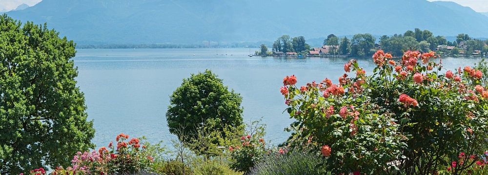Achetez cette œuvre d'art de paysage paysage du parc avec roses, jardin spa Gstadt, lac chiemsee par SusaZoom sur toile, aluminium, ArtFrame ou photographie (encadrée), impression d'art en haute qualité et tout format.