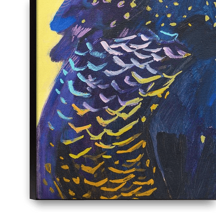 Noir ou pas noir ? Toutes les nuances de noir ressortent dans ce tableau grâce au fond jaune vif. De quoi attirer les regards dans n'importe quel intérieur. L'œuvre a été réalisée sur toile avec de la peinture à l'huile combinée à des paillettes d'or.