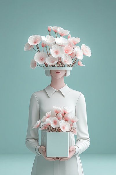 Achetez cette œuvre d'art abstraite portrait surréaliste femme avec fleurs par Egon Zitter sur toile, aluminium, ArtFrame ou photographie (encadrée), impression d'art en haute qualité et tout format.