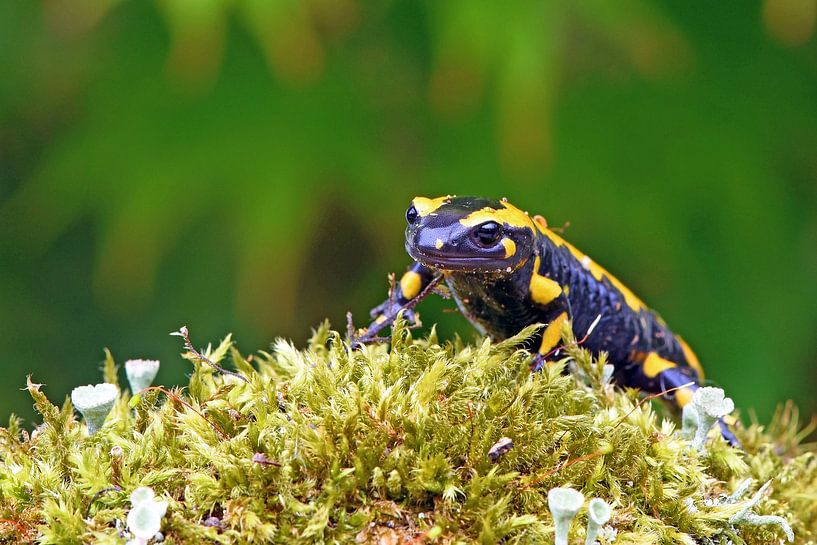 La salamandre tachetée… l’un de nos amphibiens indigènes les plus rares. Quel bonheur de la découvrir sur la mousse dans la forêt.