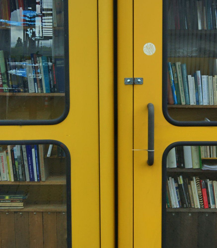 Ancienne cabine téléphonique comme bureau de prêt de livres à la mine Hugo à Gelsenkirchen