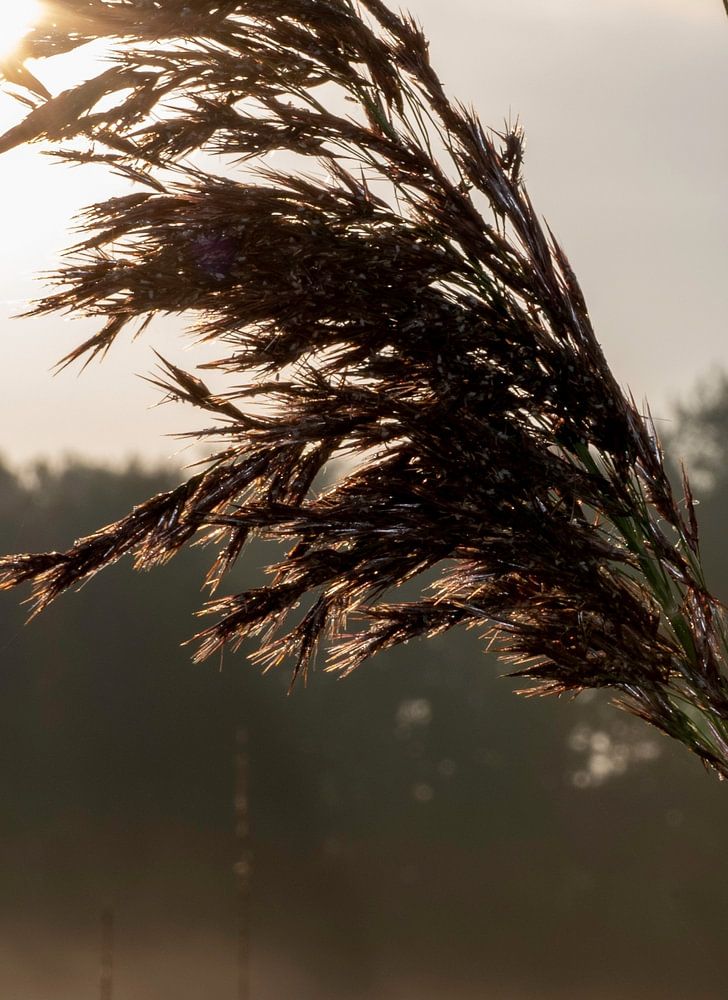 Photographié tôt le matin, cet épi d'herbe avec la rosée du matin dans le soleil levant.