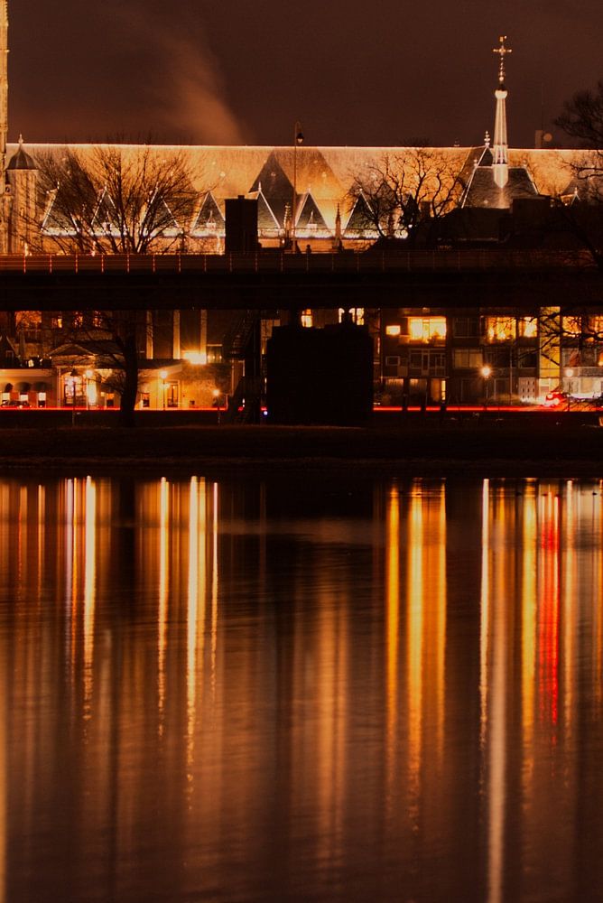L'église Lebuinus de Deventer avec sa célèbre tour de Deventer. La fierté de Deventer. Le beau reflet dans l'eau rend l'image complète.