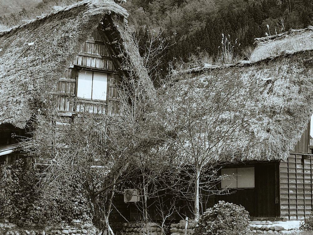 Een traditioneel japans huis in Shiragawa-go - sepia versie