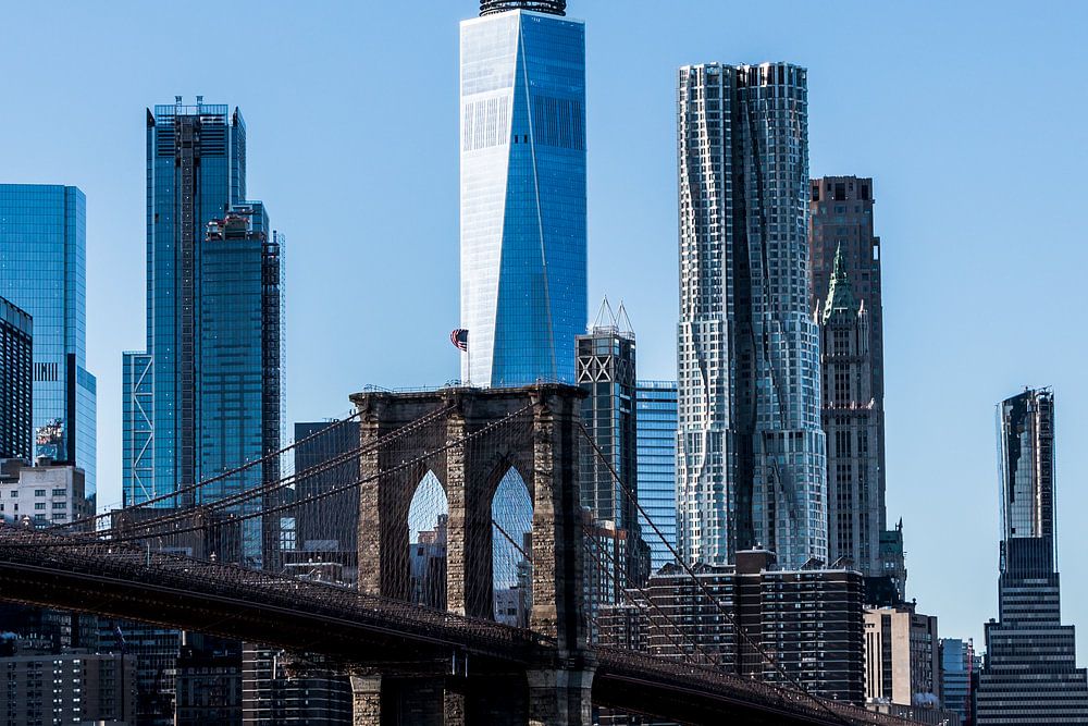 Achetez cette photo un centre de commerce mondial et un pont de Brooklyn à New York en hiver par Eric van Nieuwland sur toile, aluminium, ArtFrame ou photographie (encadrée), impression d'art en haute qualité et tout format.