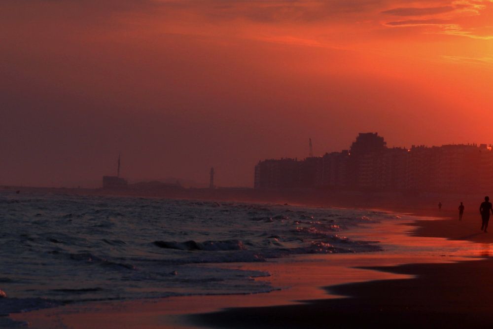Lever de soleil sur la plage de la côte d'Oostduinkerke (Koksijde) - côte belge