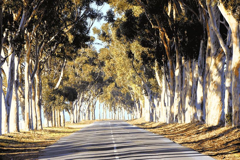 Acheter ce illustration une allée d'eucalyptus techniques mixtes par Werner Lehmann sur toile, aluminium, ArtFrame ou photographie (encadrée), impression d'art en haute qualité et tout format.