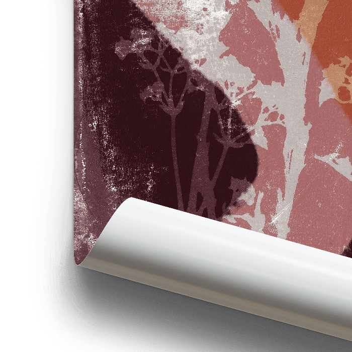 À propos de ‘Abstrait Retro Botanique. Fleurs, plantes et feuilles dans les tons orange, rouge, brun, blanc.’ par Dina Dankers