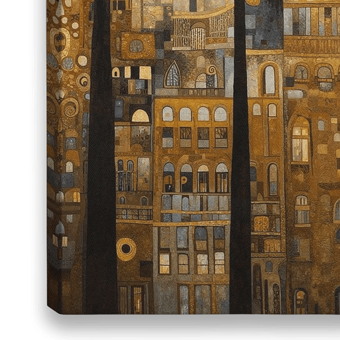 "Abstract Paris" est une peinture numérique d'un parc à Paris. La palette de couleurs est construite autour de la couleur or avec des éléments subtils orange, marron et gris. L'œuvre donne un aspect chaleureux et élégant à votre intérieur !