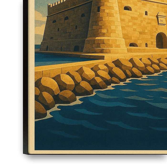 À propos de ‘Affiche Art Déco Hērakleío - Forteresse de Koules au bord de la mer’ par Travel Shop