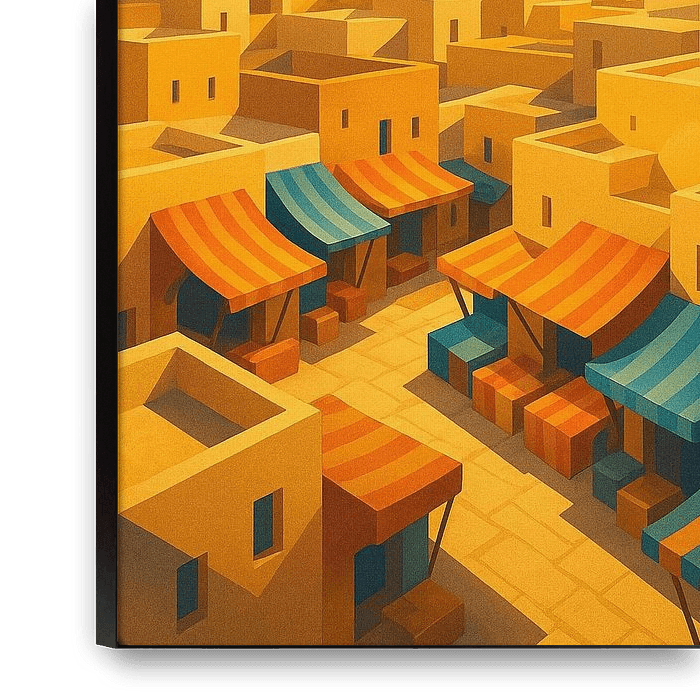 À propos de ‘Affiche Art Déco de Tunis - Toits de la Médina et couleurs du marché’ par Travel Shop