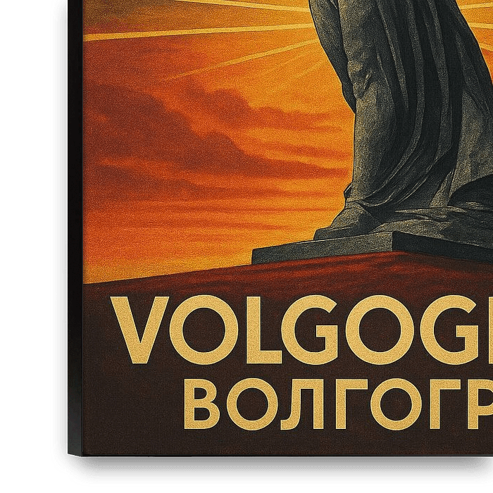 Rendez hommage à l'incroyable résilience et à l'histoire de Volgograd (anciennement Stalingrad) avec cette affiche puissante. L'œuvre d'art est dominée par la silhouette impressionnante de "The Motherland Calls", l'une des plus hautes statues du monde. La figure de la femme levant son épée est représentée avec une énergie et un…