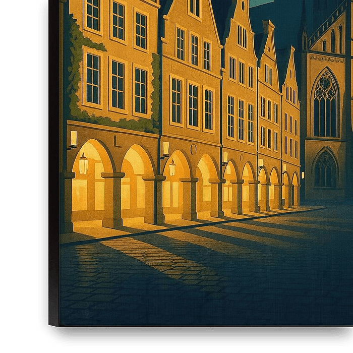 Achetez cette œuvre d'art Art déco Affiche de Münster - Cathédrale historique et Prinzipalmarkt en style Art déco par Travel Shop sur toile, aluminium, ArtFrame ou photographie (encadrée), impression d'art en haute qualité et tout format.