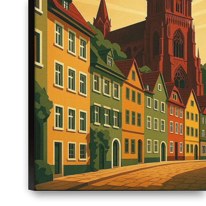 Achetez cette œuvre d'art de paysage Affiche de voyage de Fribourg - Vieille ville historique Art déco par Travel Shop sur toile, aluminium, ArtFrame ou photographie (encadrée), impression d'art en haute qualité et tout format.
