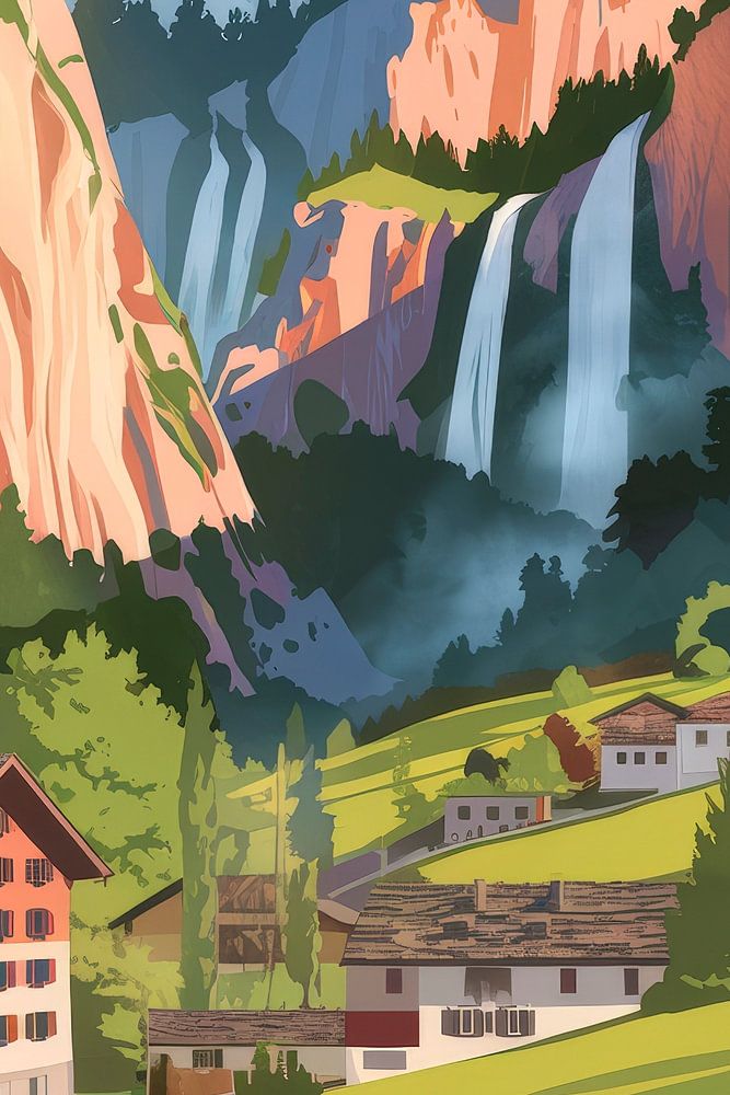 Un panorama idyllique nous transporte dans le paysage pittoresque de la Suisse, où les cascades bruyantes et les douces collines se rencontrent harmonieusement. Les charmants chalets en bois au premier plan invitent à la rêverie. Parfaits pour le salon, ils apportent une touche de nature et de détente dans la pièce. Une petite retraite pour le quotidien !