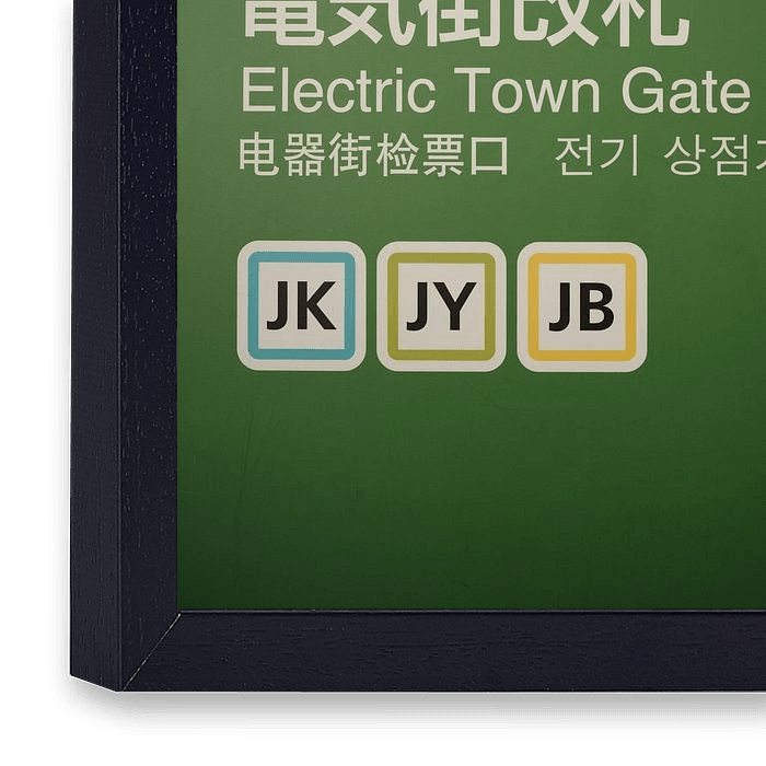 Cette image montre le panneau emblématique à l'entrée de la station Akihabara et de la célèbre Electric Town Gate à Tokyo. Le panneau vert vif est conçu avec des caractères japonais, chinois, coréens et anglais et met en évidence la signification multiculturelle d'Akihabara - la Mecque de la technologie, de la culture pop et du shopping au Japon. Les pictogrammes clairement structurés des lignes JR symbolisent l'organisation parfaite des voies de communication urbaines. L'innovation électronique, la culture des animes, les salles d'arcade et la vie de rue branchée se rencontrent ici et font de ce lieu un aimant pour les touristes et les fans de technologie du monde entier. La scène est minimaliste, mais chargée d'énergie et de modernité. Ce motif s'adresse aux amateurs de l'atmosphère des grandes villes asiatiques, du design graphique et du minimalisme urbain. En tant que tableau mural, il apporte l'ambiance de Tokyo, la diversité des cultures et l'avenir technologique de la ville directement dans la maison, le bureau ou le magasin et inspire par sa clarté et son sentiment de métropole.