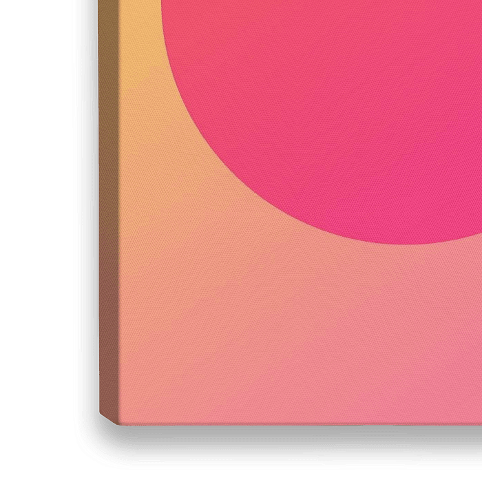 Œuvre d'art numérique intitulée : "Neon vibes". Cercle rose vif sur un fond mixte avec des nuances de rose et de jaune. Une explosion de couleurs sur votre mur !