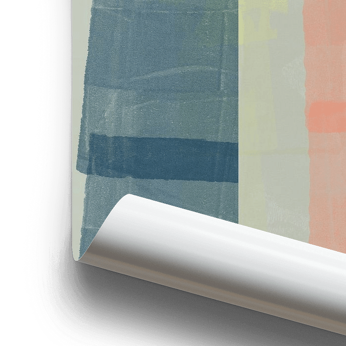 Œuvre d'art colorée en techniques mixtes. Collage de textures monotypes dans une palette de couleurs inspirée du printemps. Couleurs douces, corail, rose, bleu. Œuvre d'art pour un salon, une chambre à coucher, un hall d'entrée ou un jardin. Intérieur romantique, scandinave, éclectique, bohème, basique.