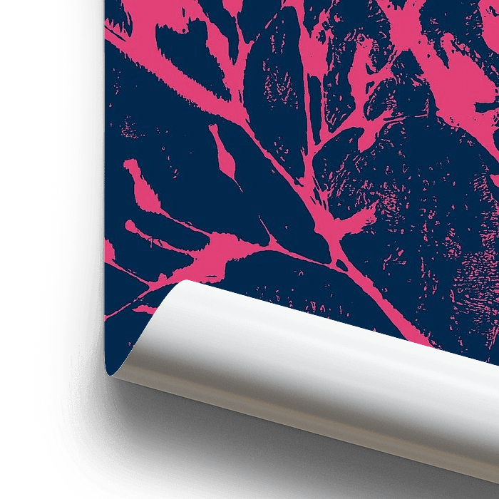 À propos de ‘Art botanique abstrait. Formes organiques en rose magenta et bleu foncé.’ par Dina Dankers