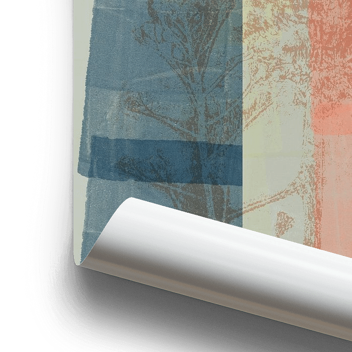 Œuvre d'art colorée en techniques mixtes. Collage de textures monotypes, de fleurs et de plantes, de formes et de lignes modernes. Palette de couleurs inspirée du printemps. Couleurs douces, corail, rose, bleu. Œuvre d'art pour un salon, une chambre à coucher, un hall d'entrée ou un jardin. Intérieur romantique, scandinave, éclectique, bohème, basique.